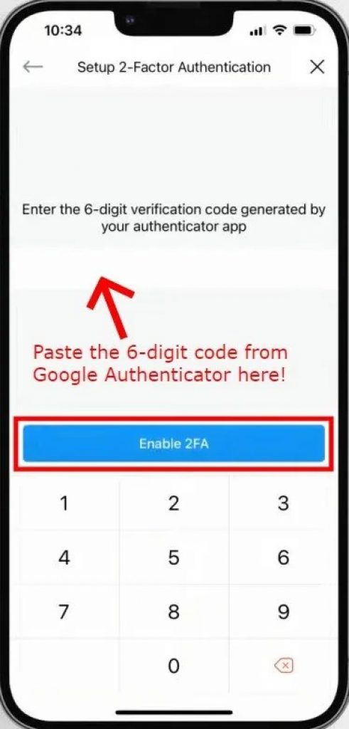 11. Fügen Sie den Verifizierungscode ein und aktivieren Sie 2FA