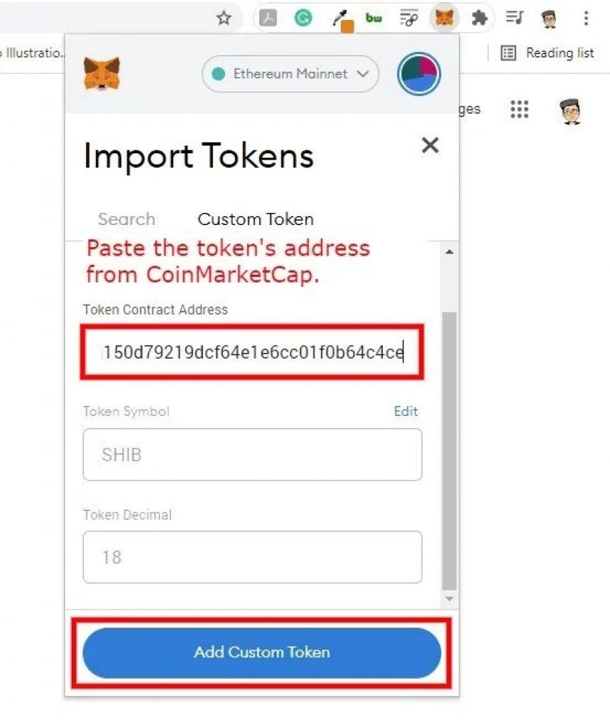 Anschließend können Sie den Token in MetaMask importieren, indem Sie seine Adresse einfügen.